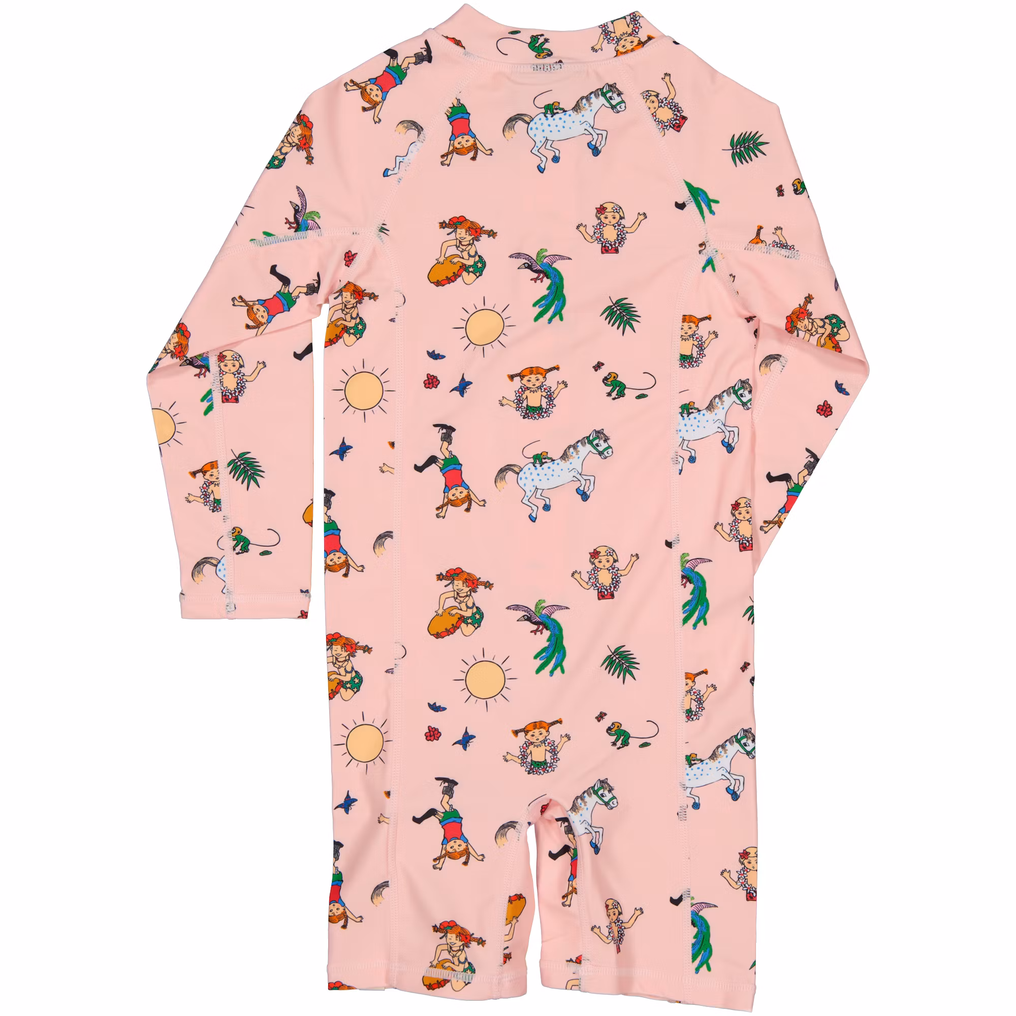UV-dräkt med Pippi motiv och korta ben och långa armar som skyddar ditt barn mot solen strålar.
